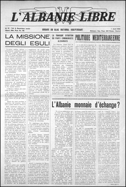 We challenge the usefulness of studying and discussing some of the fundamental aspects concerning the future structure of the State, but all this, if it is not expressed in an atmosphere of calm and serenity, if addressed in a in a state of acrimonious controversy, the final purpose, which aims to prepare a ground free from constraints to the solution of the questions pertaining to the future of the homeland, can irreparably suffer. The controversy must not cloud the view, which must remain fixed on the principal objective; the liberation of Albania from communism.