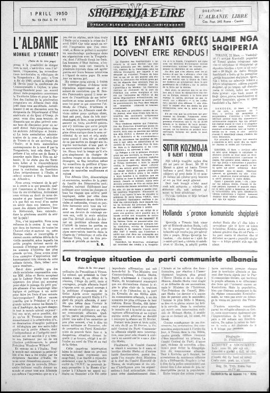 Political parties are an expression of the thought and will of free men. First of all to the Albanians, to our oppressed brothers at home, we must strive to preserve the quality of men, qualities that they are losing; they must be given back the most basic personal freedoms, currently suffocated in terror and blood. We exiles can only affirm one thing without fear of denial: that the vast majority of our people anxiously awaits us to help them get out of the hell in which they suffer. The nightmare that oppresses him does not allow him for a moment to think about the future structure of the state. He longs for liberation, he longs to get out of the isolation imposed on him by the iron curtain, he aims to return to the free acceptance by the free people of Europe. This for now and nothing else.