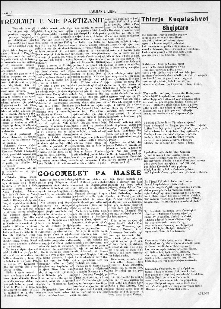 From time to time the thick curtain which veils Albania and her present dark developments is pierced by some sudden light. By now clear indications appear that Russia’s plan, so far, disguised under an ideological attire of social progress, is being carried on mathematically and inexorably in that unfortunate country. The strategical importance of Albania induces the Russians to take drastic measures to gain control of the country that gives their unbridled imperialism the possibility of reaching the Mediterranean.