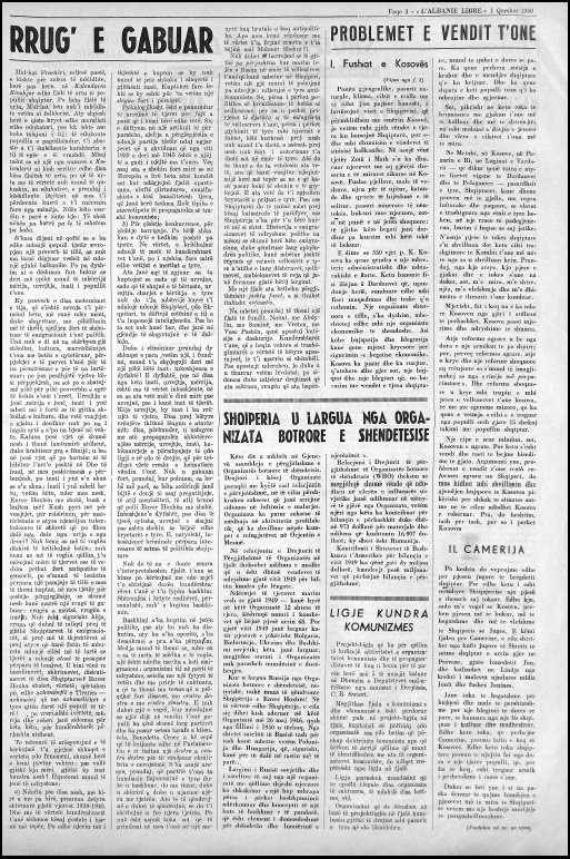The term ‘nationalism’ and the qualification of ‘nationalist’ often recur in these columns of ours as well as in those of the organs of other anti-communist Albanian parties or groups. We don’t want to fall victim to malicious interpretations. Far be it from us to include aggressive intentions in the content of our nationalism. This term is used by us to contrast it with that of communism. After all, Albania, a tiny state, does not scare anyone. Indeed, it is aware of its fragility among neighboring peoples possessed by overbearing lusts for expansion. And it takes the measures it can.