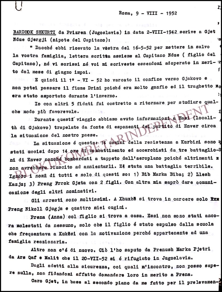 BARDHOK SHKURTI from Prizren (Yugoslavia) on 2-8-1942 writes to Gjet Ndue Gjergji (the Kapidan’s nephew):