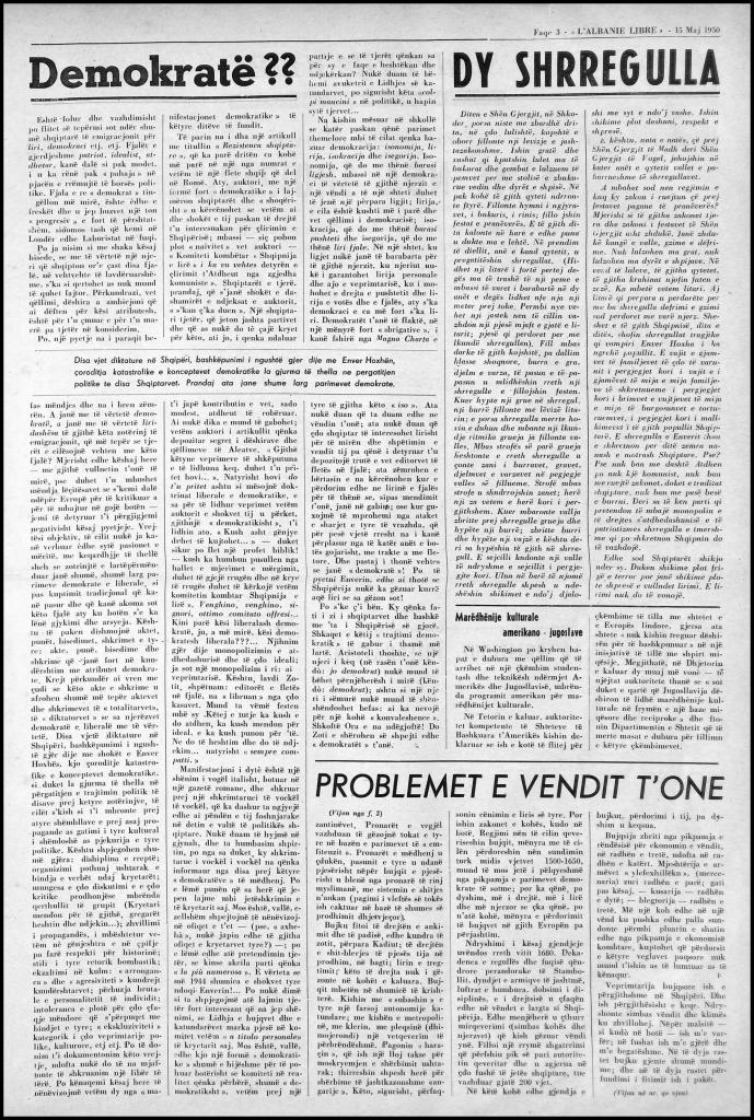 In the foreign press, at intervals that are sometimes long and short, there is a lot of talk about the anti-communist resistance in the mountains of Albania. Lately, articles on this subject have also appeared in some major South American newspapers. By now, in the opinion of the Western countries, the idea is strengthened that the Albanian sector remains one of the prime nerve centers of the huge chessboard where the forces of the two western and eastern blocs face each other in the so-called cold war.