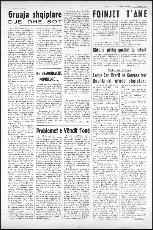 The Albanian National Day, which is the anniversary of the Declaration of Independence, is the day of Albanian brotherhood. This is a day of happy memories of the past, which are now tinged with bitterness in these unhappy times, but the Albanian is always full of ardent hope for the future and on this special day speaks to his fellow countrymen with sincere affection. Every difference in ideas is put aside, and all disagreements settled. In religious silence they lift their minds in adoration towards the common Mother who gives to all equally noble blood in their veins, a perennial flame in their hearts and a sharp, rough idiom on the tongue to make brother understand brother.
