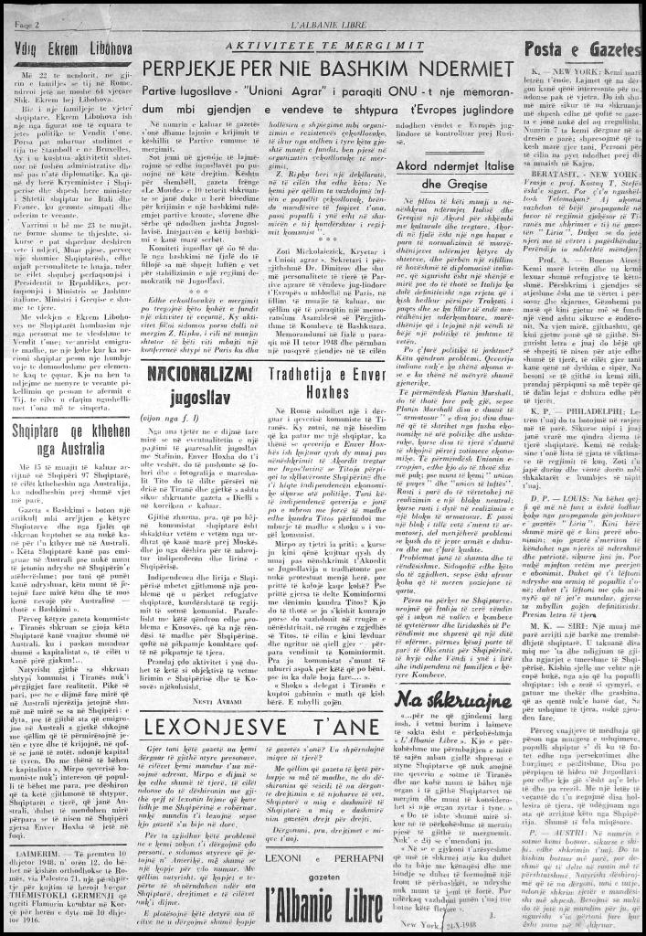 Me vdekjen e Ekrem Libohoves ne Shqiptaret humbasim nje nga personat me te vlesfshme te Vendit t’one; vecanrisht emigrate madhe, ne nje kohe kur ka necioni shqiptar peson nje humbje voje te domosdoshme per elemente kaq te cquar. Kjo na ben ta ndjejme ne menyre te vecante pikellimin qe pesuan te afermit e Tij, te cilve u cfaqim ngushellimbet t’ona me te sinqerta.