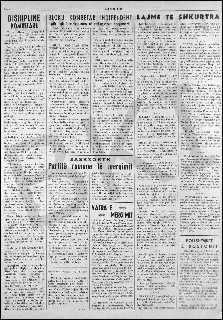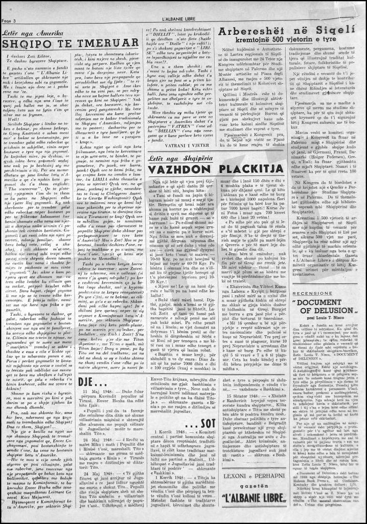 This false propaganda cannot, however, last very long. So we must note that in America too there are many Albanians who, in spite of those who still work for the Reds, have begun to open their eyes and to demonstrate that “to take the part of the Red Government of Tirana harms not only the mother country but also the United States”.