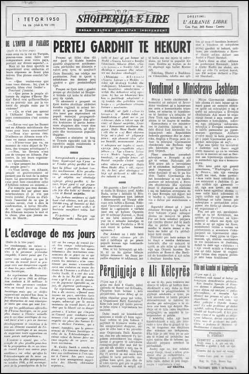 All the Powers, to varying degrees, try to attract into their political game the groups of Albanian exiles who, anguished at heart by the dramatic conditions in which the country finds itself, desire nothing more than to find ways and means to intensify the work intended to free it from the oppression and terror of the Kremlin emissaries.